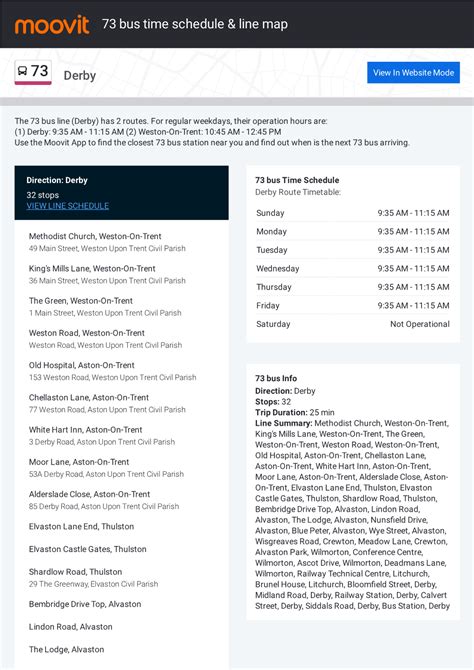 The 73 bus schedule operates on a fixed timetable, and it is essential to familiarize yourself with the timings to avoid missing your bus. The schedule is divided into two parts: